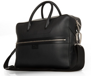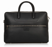 Schwarze Jaguar Aktentasche, die aus einer Kombination von Glatt- und Narbenleder besteht. Zudem besticht Sie durch Innentaschen sowie dem Jaguar Logo auf Reißverschlussschiebern und Schnallen.